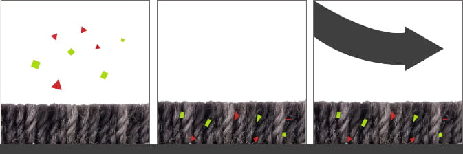 Der Pol (Flor) des Teppichbodens fungiert als dreidimensionale Falle für Feinstaub und Allergene.